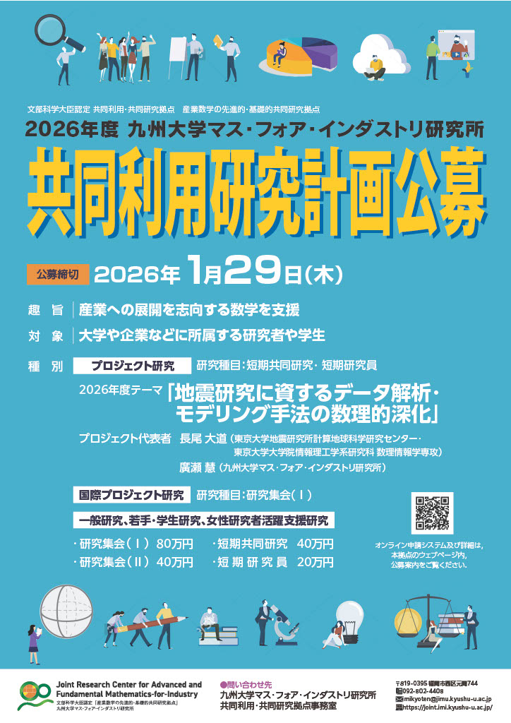 本サイトは,九州大学マス・フォア・インダストリ研究所の共同利用・共同研究拠点「産業数学の先進的・基礎的共同研究拠点」専用ページです.